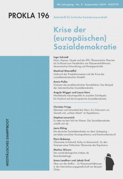 Im Mai 2019 erlitt die europäische Sozialdemokratie bei den Europawahlen ein Fiasko. Sie holte eines der schlechtesten Ergebnisse in ihrer Geschichte. Das Wahlergebniss ist Ausdruck einer tiefen Krise des sozialdemokratischen Projekts und Ergebnis seines langjährigen Niedergangs. Mittlerweile liegen die goldenen Jahre sozialdemokratischer Wahlerfolge etwa 20 Jahre zurück. Seit den 1990er Jahren unterlag die Sozialdemokratie einem inhaltlichen wie strategischen Transformationsprozess, der als »Marktsozialdemokratie« (Oliver Nachtwey) bezeichnet wird. Die damit einhergehenden Legitimationsdefizite entfernten die europäischen sozialdemokratischen Parteien von ihrer angestammten Klientel. Fortan wollten sie Parteien der »Mitte« sein. Die Krise seit 2008 beschleunigte den Niedergang, der von einer tektonischen Verschiebung innerhalb des Parteiensystems begleitet ist. Die PROKLA 196 analysiert die »Krise der (europäischen) Sozialdemokratie« und arbeitet in verschiedenen Artikeln ihre gesellschaftlichen, politischen und ökonomischen Gründe heraus.